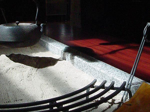 部屋の中央のテーブルに切ってある囲炉裏。いいですね。
