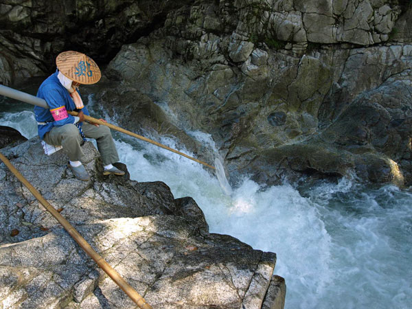 江戸時代から続く、伝統の笠網漁。今日は川の直ぐ近くに居ても汗だくになりました。