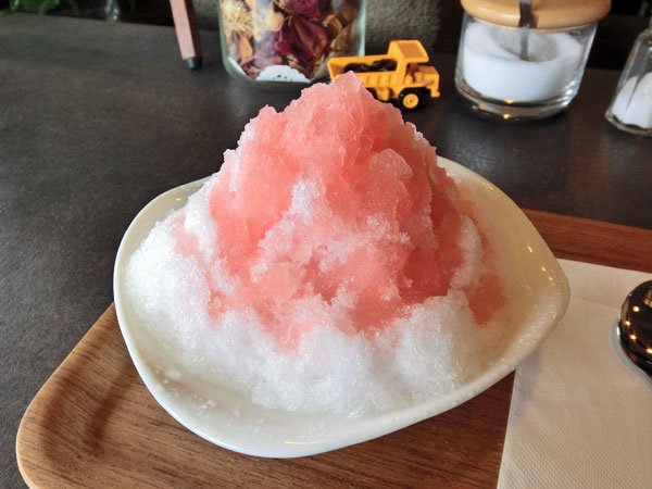 今日は暑く感じたので、かき氷を注文。お願いしたのは天然由来のイチゴ。