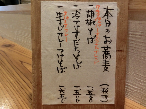 本日のお蕎麦、あなたならどれを選びますか ?。マウスオンで、もう1枚。(7月7日撮影)