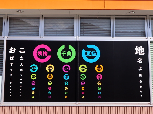 「田毎の月」で有名な、姨捨山。長野道の姨捨SAの建物にこんな看板が備え付けられていました。