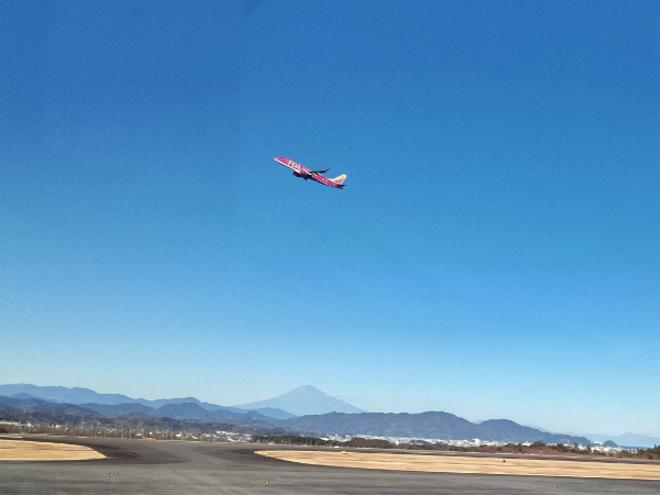 ターミナルビルから富士山が見えましたが山頂までは直線距離で約80kmも離れています。