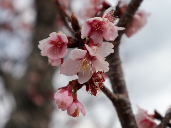 毎年恒例、石巻西川町の中部電力変電所前に植えられた緋寒桜の撮影に行って来ました。