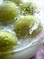 作り方 - 梅を漬けた日 2006.6.5 - 梅を洗って6〜8時間水に浸けてアク抜きをし、水気を取りへたの所を竹串等で綺麗に取り除きます。 |