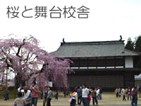 旧座光寺小学校舞台校舎脇に植えられている半八重枝垂れ紅彼岸桜。 |