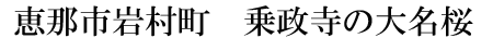 日本一標高の高い山城として知られる岩村城の麓にある「乗政寺山の大名桜」、樹齢200年の江戸彼岸桜である。「大名桜」は、岩村城の歴代藩主や郷土の偉人の眠る墓地に植えられています。岐阜県恵那市岩村町殿町 2014・4・12現在