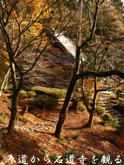 湖北、鶏足寺と石道寺の紅葉 湖北の紅葉の名所として有名な鶏足寺に出掛けて来ました。不思議な鳥の声と足跡に導かれて、寺に辿りついた、そこから名がついたと云われています。 200本ものモミジの枯木。紅葉時には真っ赤に染め上がるそうです。そして一番の見所は、落葉で埋め尽くされる参道。中に立ちいらぬようにしてありました。 今年は紅葉が早く、20日頃が見頃だった様で、予定通り21日に訪問していれば最高だった様です。山道を越えれば、石道寺が姿を現します。余談ですが、偶然にも2日前にボルボ仲間のKAN夫妻も紅葉狩りに来ていたようです。 2016.11.28現在