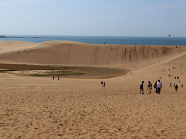 私が住んでいる東三河からは静岡県浜松市の中田島砂丘が割と近くて5月3〜5日に行われる浜松まつりの凧揚げ会場にもなっているので訪問頻度は高いです。俗に言う日本三大砂丘の鳥取砂丘にもいつか行ってみたいと思ってました。今回旅行先を岡山県をメインに選んだので、序に鳥取県も忍び込ませました。イメージ的にはもっと横に長いかな?と思っていましたが、植林や農地開発などが行われた為、砂丘らしさが残るのは観光地となっている浜坂砂丘の東西1.8km程度の部分だけなんですね。中国山地の花崗岩質の岩石が風化し、千代川によって日本海へ流された後、海岸に集まったものが砂丘の主な砂となっています。海中の砂を海岸に向けて流れ寄せる潮流と、海岸線に堆積した砂を内陸へ吹き込む卓越風の働きで形成されたそうです。今回は駱駝に跨った姿を記念写真に撮りましたが、何枚撮影しても650円の設定でした。因みに駱駝単独撮影の場合は100円です。駱駝に乗っての砂丘散歩も設定されていましたが、この日は体調不良にて撮影会のみでした。 (2024.04.12現在)