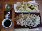 天ぷらざるそば1400円かきあげ天ぷらかけそば1400円 そば豆腐300円。   | | 長野県下伊那郡阿智村智里 829-5 TEL:0265-43-3711 営業時間 11:00〜17:00頃 (売切れ次第) 定休日:木曜日 石臼挽き自家製粉 二八 03・11・23現在