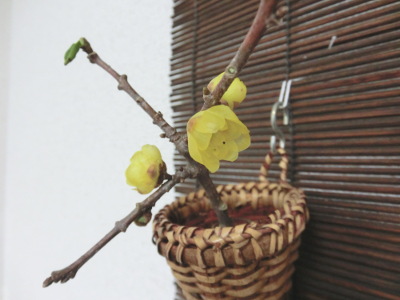 12月7日(金) 『ろうばい』 先日友人が持って来てくれたろうばい。 咲くの早過ぎですよね。 でも、ちゃんといい匂いしてます。 今年は桜も咲いてしまったり、おかしな気候です。 早目に植えた我が家のパンジーも、暖かさのせいで徒長して終わってしまいそうです。 いつまでも寒くならず、身体がゆるゆるのところ明日からぐっと冷えこむそう。 体調を崩さない様に気をつけないとね。