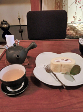 和暦ロールケーキとほうじ茶のセットを注文。