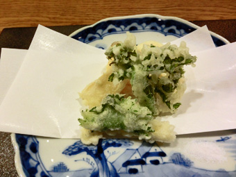 ![]() 江戸後期の伊万里志田窯の皿に盛られた天婦羅 |