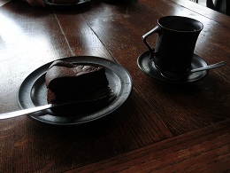 4〜5年ほど前から、私の訪問予定リストに名を連ねていた「TORASARU」。陶芸の森や大小屋の近くにあるモダンでシックなギャラリー&カフェです。場所は国道307号線の勅旨交差点を、山手側に曲って直ぐの所に在ります。駐車場は店の前に2台しか無いので、満車の時はお店の方に聞くと別の場所を教えて貰えるようです。 ドアを開けて中に入ると、店内は拘ったインテリアが落ち着いた雰囲気を醸し出しています。珈琲豆は全国的にも有名な京都の「FACTORY KAFE工船」、オオヤミノルさんのモノを使っています。この日注文したのは、ラオス南部ポラペン高原産の豆を中深煎りした珈琲と毎日6種類焼かれているチーズケーキの中からチョコレートチーズケーキ&ベイクドチーズケーキをチョイス。チーズケーキが専門と云う事ですが、私の食したチョコレートチーズケーキは、 濃厚でしっとり、チョコレートの美味しさが存分に味わえて、コーヒーとの相性も良かったです。他にパウンドケーキもありますが、こちらはテイクアウト用。こちらも大人気で渋谷ヒカリエのd47 designで、パウンドケーキ3種が定番で販売されている程です。 珈琲を待つ間、奥にある本棚をチェックしてみると、音楽、アート、ファッション、建築といった私好みのジャンルの本が並んでいました。また、併設されるギャラリーでは店主の副島氏がセレクトした信楽陶芸家などの作品が展示・販売されています。 珈琲が注がれたカップは濱中史燻≠フ作品で「ホースレザー」シリーズです。西洋の甲冑の様な黒く引き締まった形でありながら、和の雰囲気も感じられる渋い器です。ギャラリーに置いてありましたが、元々、TORASARUの為に作られたモノだったそうです。焼き物の里で、器探しに疲れたら、ここで一息入れるのも気分転換になってイイと思いますよ! |