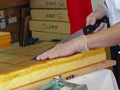 2月23日(土) 24日(日)朝9時から「窯だしふんわりカステラ (限定販売 1箱 601円)」の店頭切売り実演販売という新聞広告につられて行ってきました。今までカステラの切り売りなんて買った事が無いので期待が膨らみます。 |